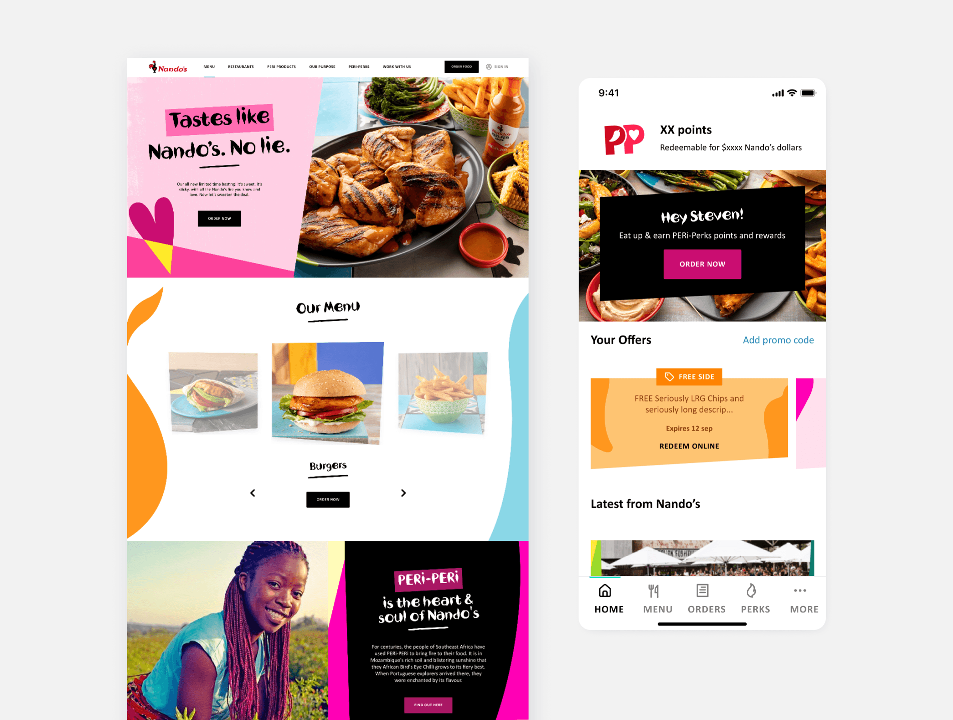 Elevated customer engagement for Nando’s with a bold, visual approach for the website and app