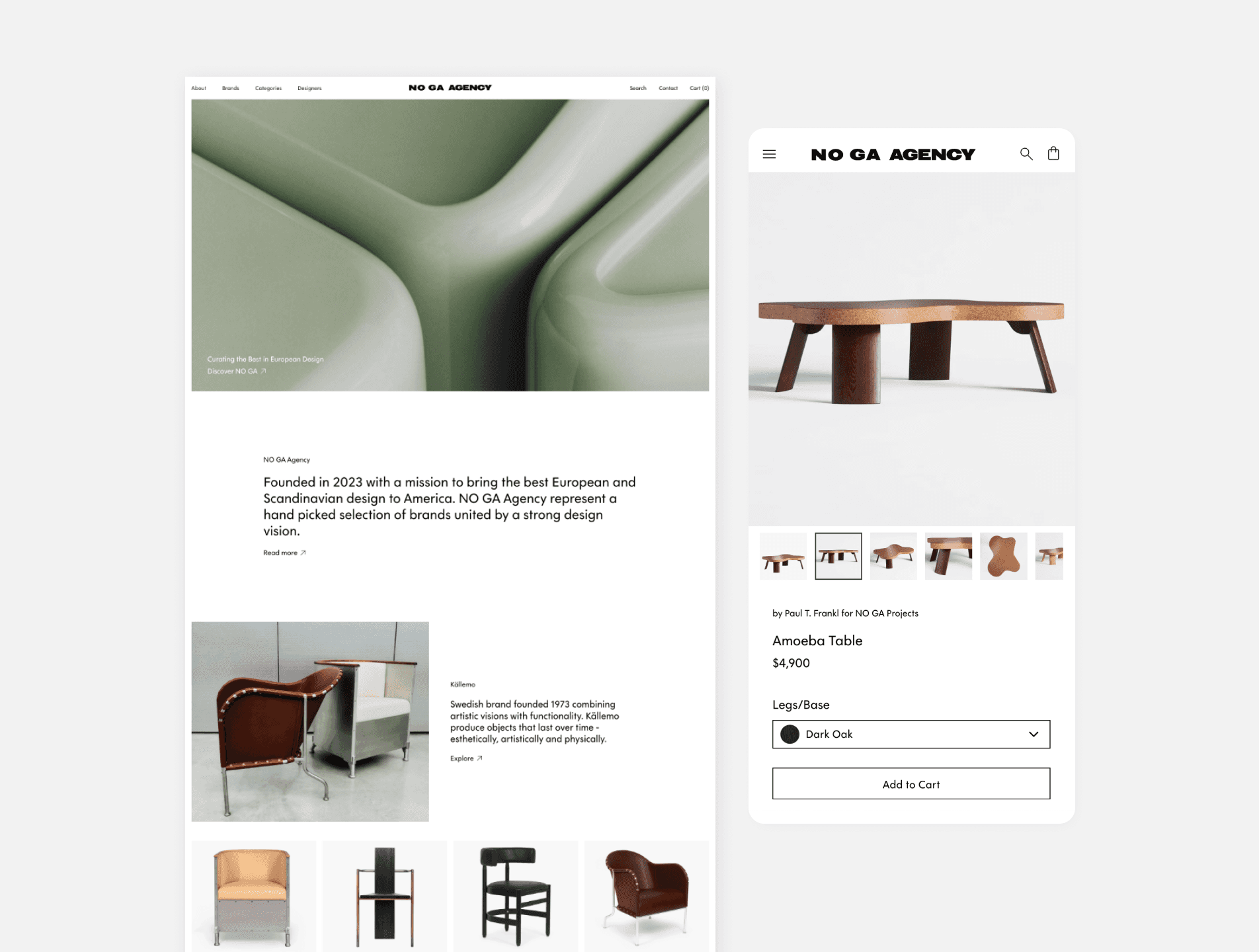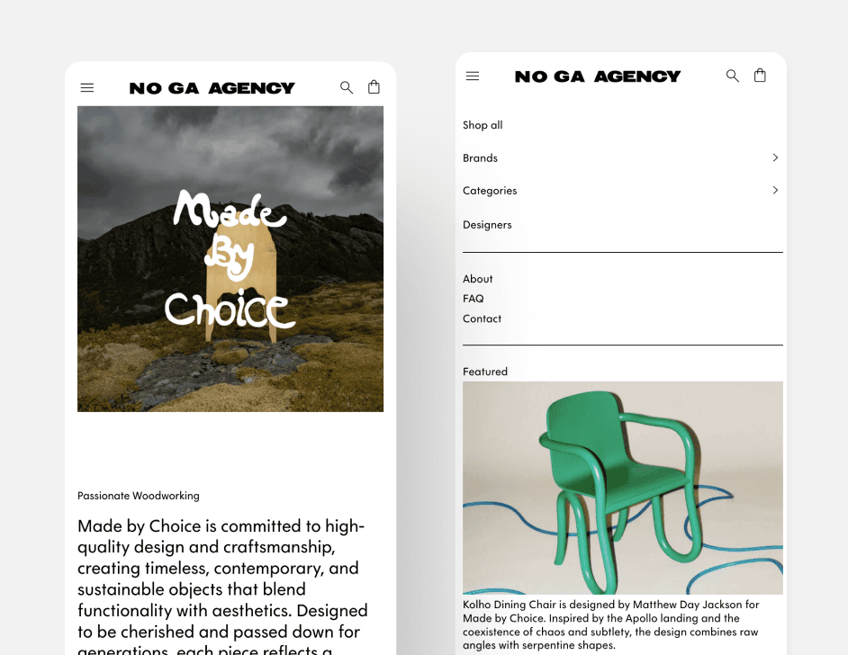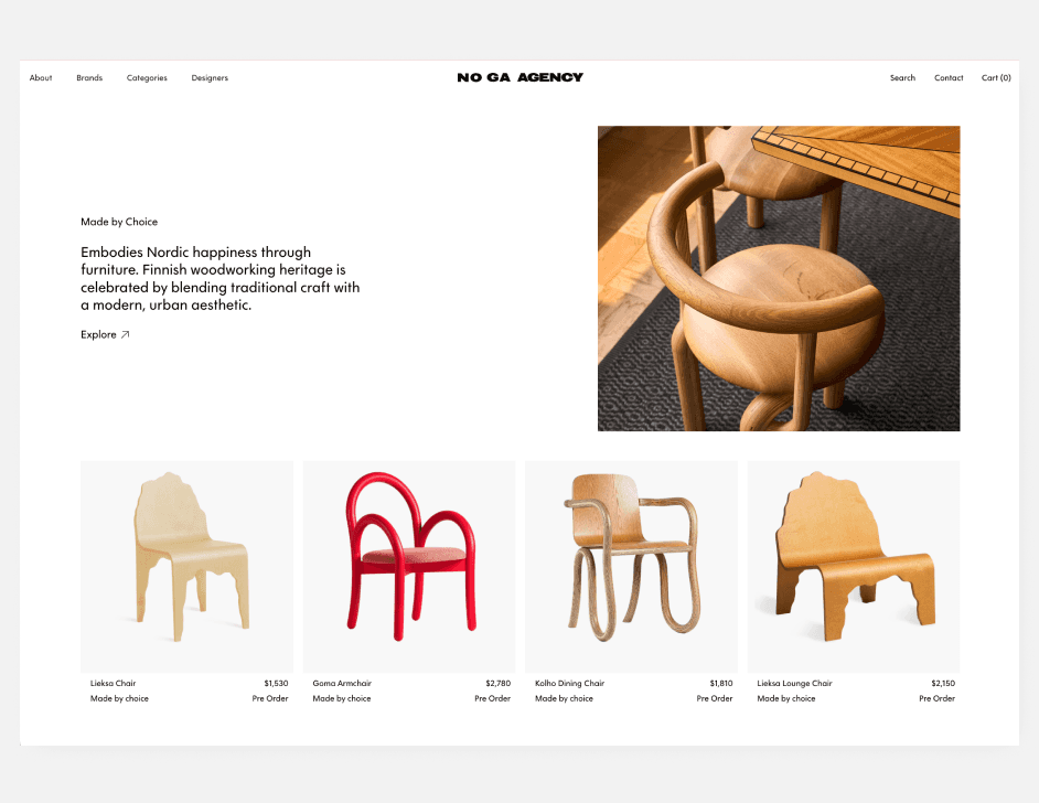 The final design successfully positioned NOGA Agency as a refined, high-end brand ready for its U.S. market debut. The website effectively communicates the agency’s curatorial expertise, offering a visually rich yet highly functional experience that resonates with design-conscious consumers.